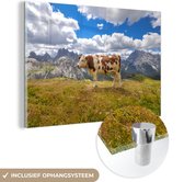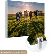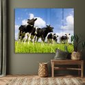 MuchoWow® Peinture sur verre 160x120 cm - Peinture acrylique sur verre - Vache - Herbe - Nuages - Photo sur verre - Peintures