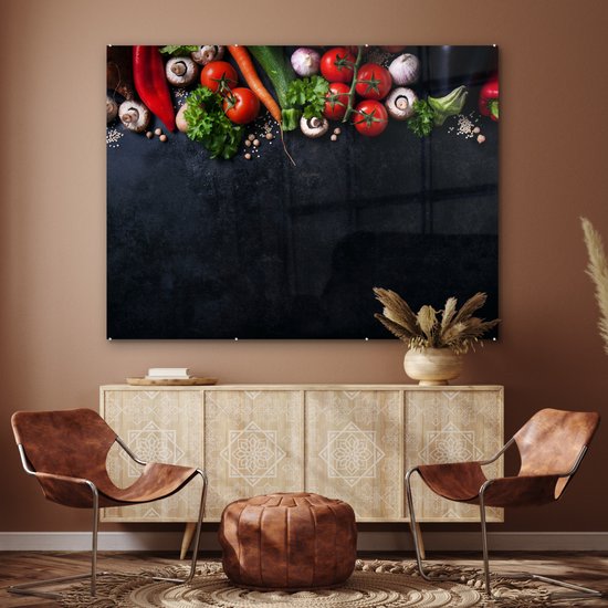 MuchoWow® Peinture sur verre 160x120 cm - Peinture sur verre acrylique - Légumes - Herbes - Épices - Zwart - Rustique - Cuisine - Photo sur verre - Peintures