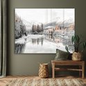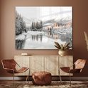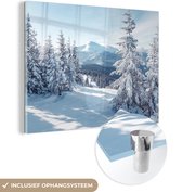 MuchoWow® Peinture sur verre 160x120 cm - Peinture sur verre acrylique - Nature - Hiver - Arbres - Montagnes - Neige - Photo sur verre - Peintures
