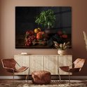 Peinture sur verre - Nature morte - Tomates - Basilic - Peinture - Végétal - Zwart - Salon - Chambre