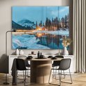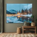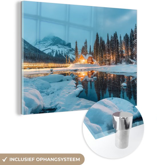 MuchoWow® Peinture sur verre 160x120 cm - Peinture sur verre acrylique - Paysage d'hiver - Nature - Maison - Montagnes - Neige - Photo sur verre - Décoration murale salon - Décoration murale chambre - Peintures