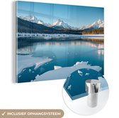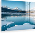 MuchoWow® Peinture sur verre 160x120 cm - Peinture sur verre acrylique - Paysage - Hiver - Lac - Montagnes - Vue - Glace - Photo sur verre - Décoration murale salon - Décoration murale chambre - Peintures