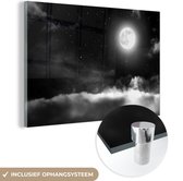 MuchoWow® Peinture sur verre 160x120 cm - Peinture sur verre acrylique - Pleine lune dans le ciel nocturne - noir et blanc - Photo sur verre - Peintures