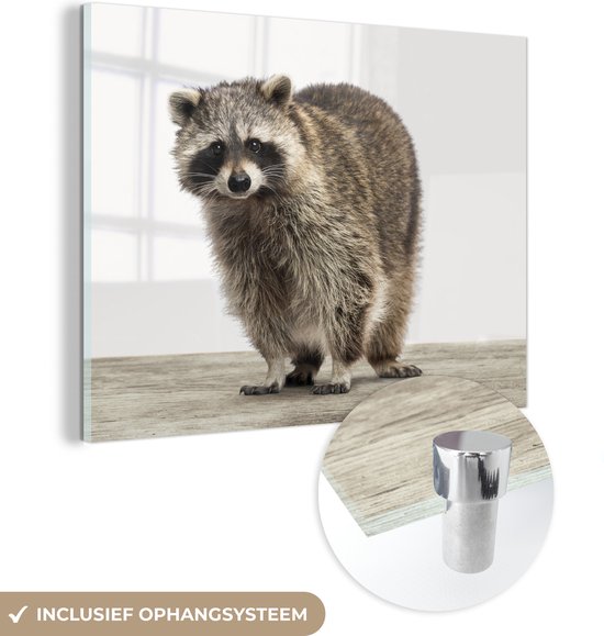 MuchoWow® Peinture sur verre 160x120 cm - Peinture sur verre acrylique - Raton laveur - Animaux - fond blanc - Garçons - Filles - Enfants - Photo sur verre - Peintures