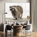 Tableau sur verre - Raton laveur - Animaux - Fond blanc - Garçons - Filles - Enfants - Salon - Chambre