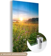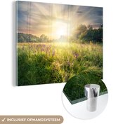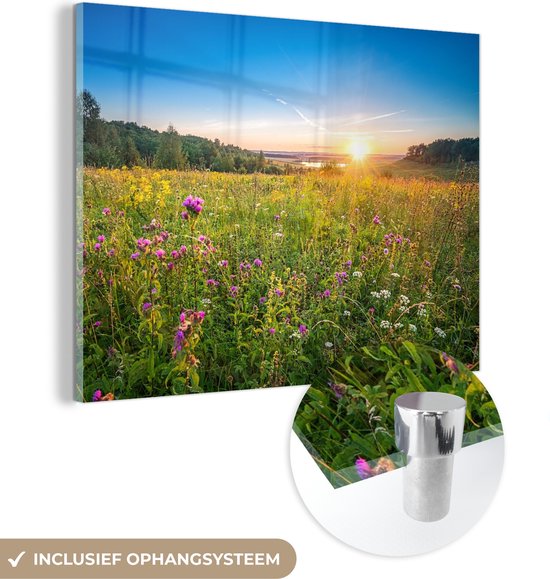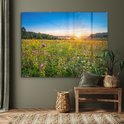MuchoWow® Peinture sur verre 160x120 cm - Peinture sur verre acrylique - Soleil - Herbe - Fleurs - Photo sur verre - Peintures