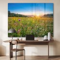 Tableau sur verre - Soleil - Herbe - Fleurs - Salon - Chambre