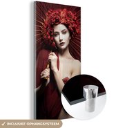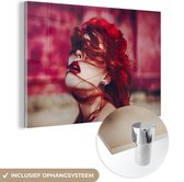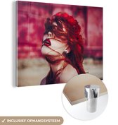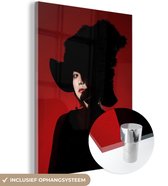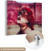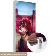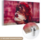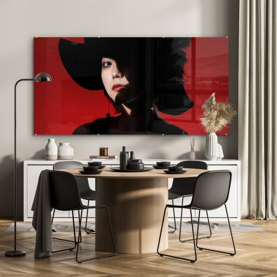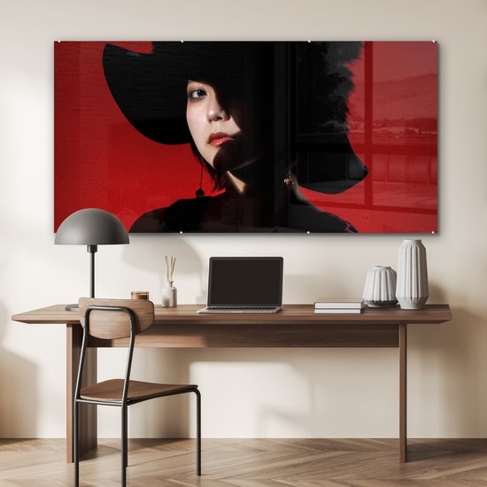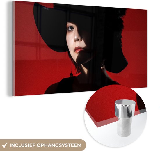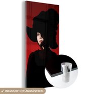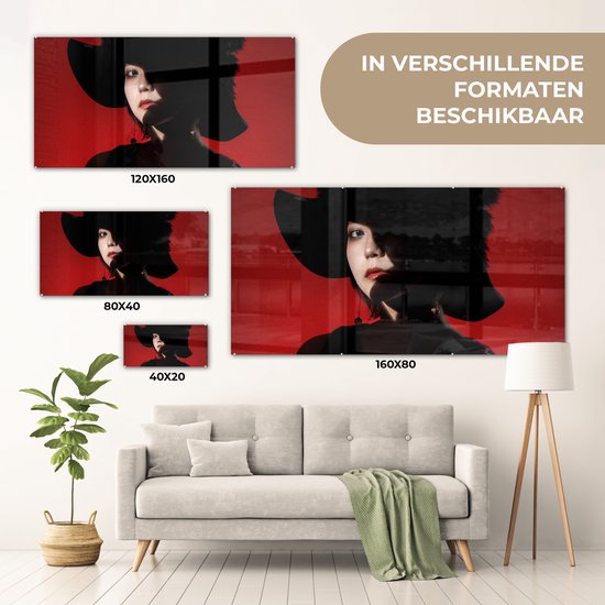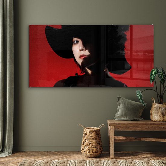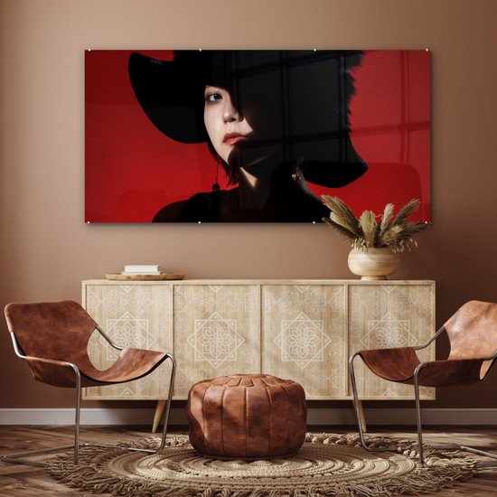 MuchoWow® Peinture sur verre 160x80 cm - Peinture sur verre acrylique - Rouge - Femme - Zwart - Portrait - Photo sur verre - Peintures