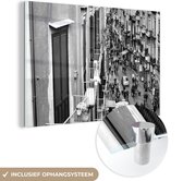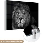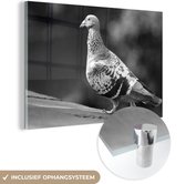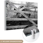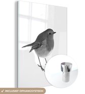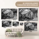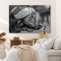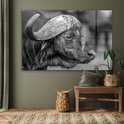 MuchoWow® Peinture sur verre 180x120 cm - Peinture acrylique sur verre - Piquebœuf à bec rouge sur un buffle - noir et blanc - Photo sur verre - Peintures