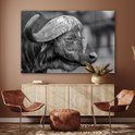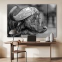 Tableau sur verre - Piqueboeuf à bec rouge sur un buffle - noir et blanc - Salon - Chambre