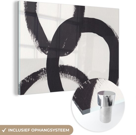 MuchoWow® Peinture sur verre 180x120 cm - Peinture sur verre acrylique - Abstrait - Formes - Zwart - Cercles - Photo sur verre - Peintures