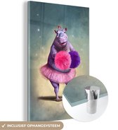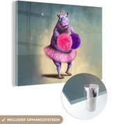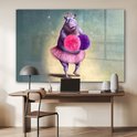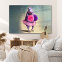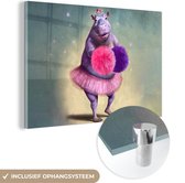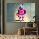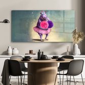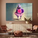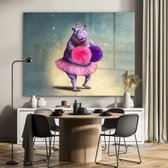 MuchoWow® Peinture sur verre 180x120 cm - Peinture sur verre acrylique - Hippopotame - Fleurs - Ballerine - Pompons - Portrait - Kids - Photo sur verre - Peintures