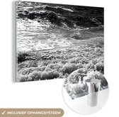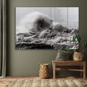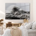 MuchoWow® Peinture sur verre 180x120 cm - Peinture sur verre acrylique - Vagues orageuses en noir et blanc - Photo sur verre - Peintures