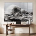 Tableau sur verre - Vagues orageuses en noir et blanc - Salon - Chambre