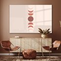 Une illustration impressionnante montrant les différentes phases de la lune dans des tons de terre sur fond beige. Ensemble, ils forment un ensemble abstrait qui s'intégrerait parfaitement dans la chambre à coucher.Spécifications produit