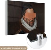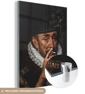 MuchoWow® Peinture sur verre 180x120 cm - Peinture sur verre - Willem van Oranje - Adriaen Thomasz - Fumer - Photo sur verre acrylique - Peintures