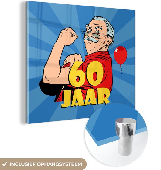 MuchoWow® Peinture sur verre 20x20 cm - Peinture sur verre acrylique - Anniversaire - 60 ans - Homme - Photo sur verre - Peintures