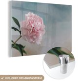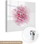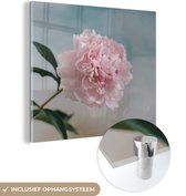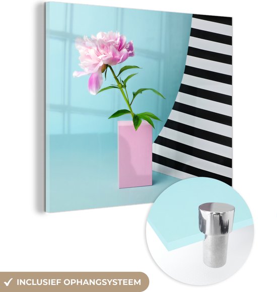 MuchoWow® Peinture sur verre 20x20 cm - Peinture sur verre acrylique - Pivoine rose sur fond bleu - Photo sur verre - Peintures