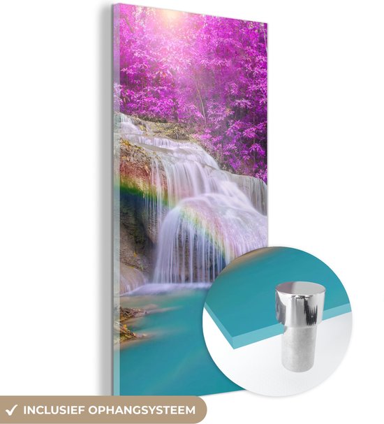 MuchoWow® Peinture sur verre 20x40 cm - Peinture sur verre acrylique - Cascade - Arbres - Arc-en-ciel - Violet - Photo sur verre - Peintures