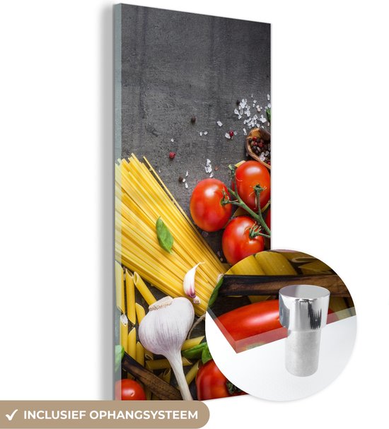 MuchoWow® Peinture sur verre 20x40 cm - Peinture sur verre acrylique - Pâtes - Herbes - Tomate - Épices - Rustique - Photo sur verre - Peintures