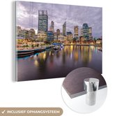 MuchoWow® Peinture sur verre 30x20 cm - Peinture sur verre acrylique - Les grands bâtiments illuminés le long de la rivière Swan à Perth - Photo sur verre - Peintures