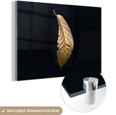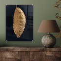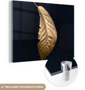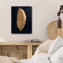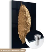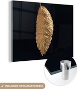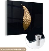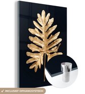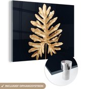 Tableau sur verre - Feuilles - Zwart - Or - Luxe - Nature - Salon - Chambre