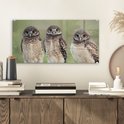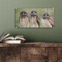 MuchoWow® Peinture sur verre 40x20 cm - Peinture sur verre acrylique - Trois chouettes des cavernes - Photo sur verre - Peintures