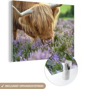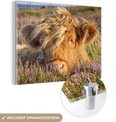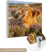 MuchoWow® Peinture sur verre 40x30 cm - Peinture sur verre - Highlander écossais - Herbe - Bruyère - Animaux - Photo sur verre acrylique - Peintures