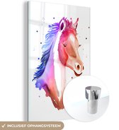 MuchoWow® Peinture sur verre 40x60 cm - Peinture sur verre acrylique - Cheval - Arc-en-ciel - Wit - Filles - Enfants - Meiden - Photo sur verre - Peintures