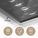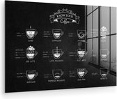 Peinture sur verre - Types de Café - Tableau texte - Zwart - Cappuccino - Expresso - Latte macchiato - Salon - Chambre