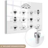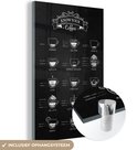 MuchoWow® Peinture sur verre 40x60 cm - Peinture sur verre acrylique - Types de Café - Tableau texte - Zwart - Cappuccino - Espresso - Latte macchiato - Photo sur verre - Décoration murale salon - Décoration murale chambre - Peintures