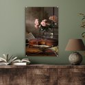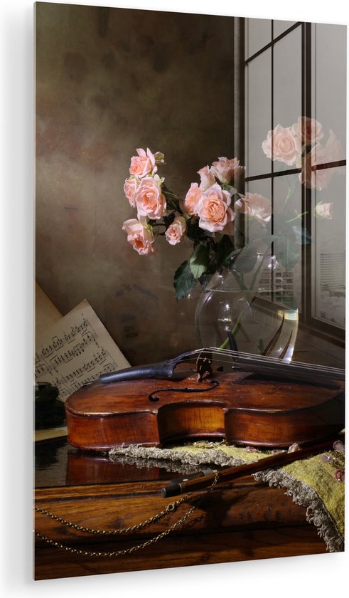 MuchoWow® Peinture sur verre 40x60 cm - Peinture sur verre acrylique - Violon - Roses - Rose - Fleurs - Nature morte - Photo sur verre - Décoration murale salon - Décoration murale chambre - Peintures