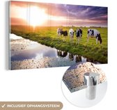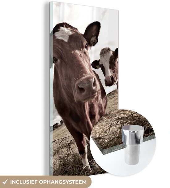 MuchoWow® Peinture sur verre 40x80 cm - Peinture sur verre acrylique - Tirage photo vaches sur un champ sépia - Photo sur verre - Peintures