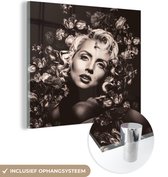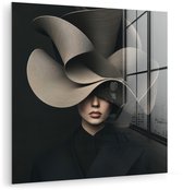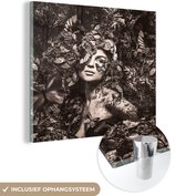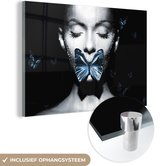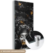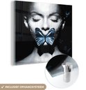 MuchoWow® Peinture sur verre 50x50 cm - Peinture sur verre acrylique - Femme - Papillon - Zwart - Wit - Photo sur verre - Décoration murale salon - Décoration murale chambre - Peintures