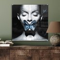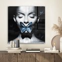 Tableau sur verre - Femme - Papillon - Zwart - Wit - Salon - Chambre