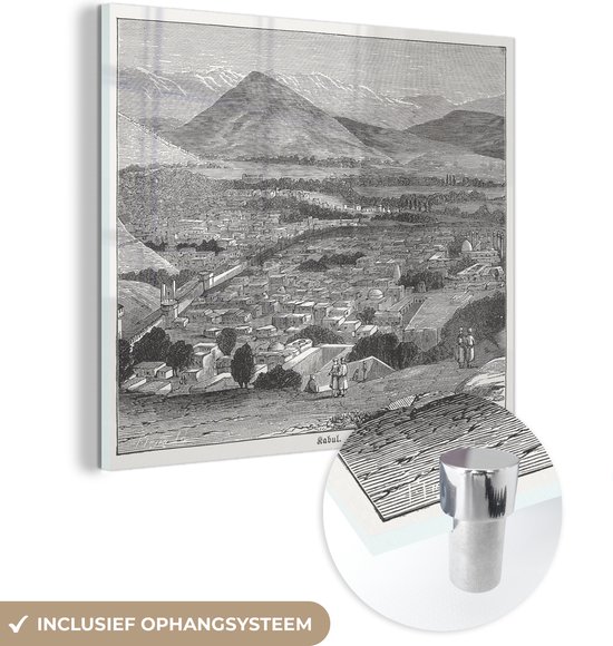MuchoWow® Peinture sur verre 50x50 cm - Peinture sur verre acrylique - Illustration Zwart de Kaboul en Afghanistan dans les montagnes - Photo sur verre - Peintures