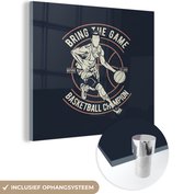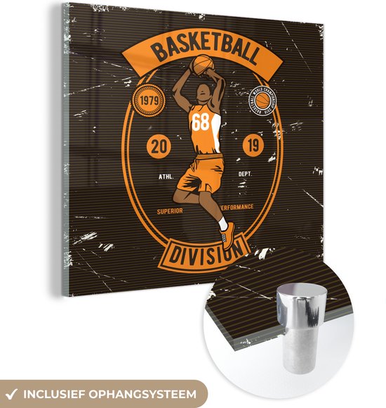 MuchoWow® Peinture sur verre 50x50 cm - Peinture sur verre acrylique - Mancave - Basketbal - Sport - Vintage - Oranje - Photo sur verre - Peintures