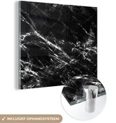 MuchoWow® Peinture sur verre 50x50 cm - Peinture sur verre acrylique - Marbre - Wit - Zwart - Photo sur verre - Peintures