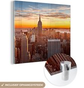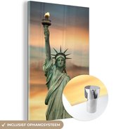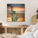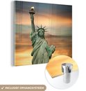 MuchoWow® Peinture sur verre 50x50 cm - Peinture sur verre acrylique - New York - Statue de la Liberté - Coucher de soleil - Photo sur verre - Peintures
