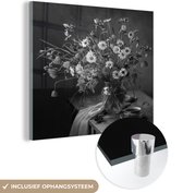 MuchoWow® Peinture sur verre 50x50 cm - Peinture sur verre acrylique - Orchidée - Fleurs - Zwart - Wit - Nature morte - Photo sur verre - Peintures