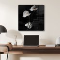 Tableau sur verre - Orchidée - Fleurs - Zwart - Wit - Nature morte - Salon - Chambre