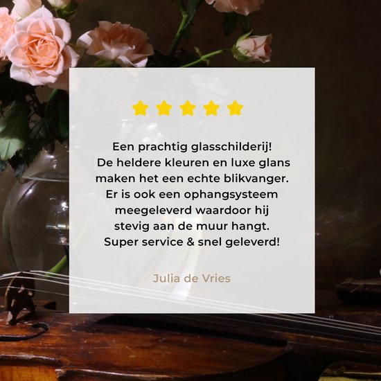 Nous visons la perfection dans tout ce que nous faisons et trouvons donc très important que les clients soient satisfaits de leur peinture sur verre ! Ben n'êtes pas satisfait de votre achat ou vous avez des questions et/ou des commentaires ? N'hésitez pas à nous contacter et nous chercherons ensemble une solution adaptée !