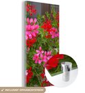 MuchoWow® Peinture sur verre 60x120 cm - Peinture sur verre acrylique - Fleurs de géranium dans le jardin - Photo sur verre - Peintures