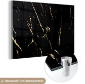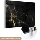 MuchoWow® Peinture sur verre 60x40 cm - Peinture acrylique sur verre - Marbre - Zwart - Luxe - Argent - Photo sur verre - Peintures