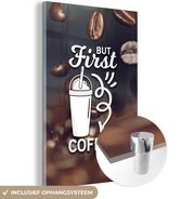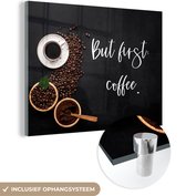 MuchoWow® Peinture sur verre 60x40 cm - Peinture sur verre acrylique - Dictons - Citations - Café - Mais d'abord : le café - Photo sur verre - Peintures
