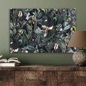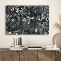 Tableau sur verre - Fleurs - Toucan - Feuilles - Salon - Chambre
