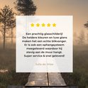 Le verre acrylique est 50 % plus léger que le verre et est spécialement conçu avec la dernière technologie d'impression UV, ce qui donne une texture lisse et brillante. Ceci, combiné à l'imprimé coloré, le rend idéal pour un intérieur moderne, classique et rural. Le tableau est en verre acrylique et a une épaisseur de 3 mm. Vous pourrez facilement le fixer au mur souhaité grâce au système de suspension fourni.