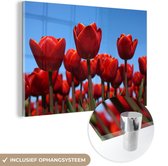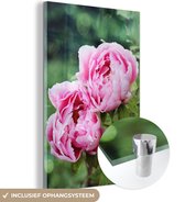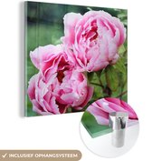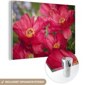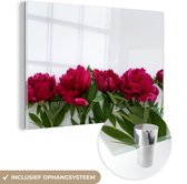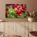 MuchoWow® Peinture sur verre 60x40 cm - Peinture sur verre acrylique - Un jardin rempli de pivoines rouges - Photo sur verre - Peintures
