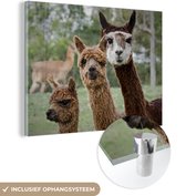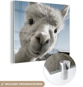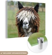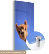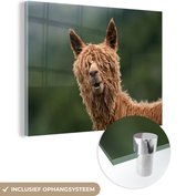 MuchoWow® Peinture sur verre 60x80 cm - Peinture sur verre acrylique - Alpaga - Marron - Blauw - Photo sur verre - Peintures