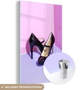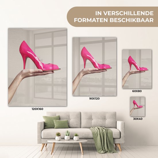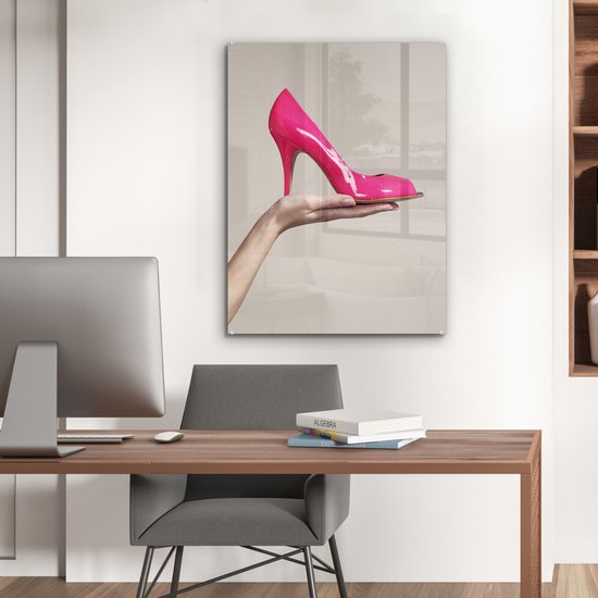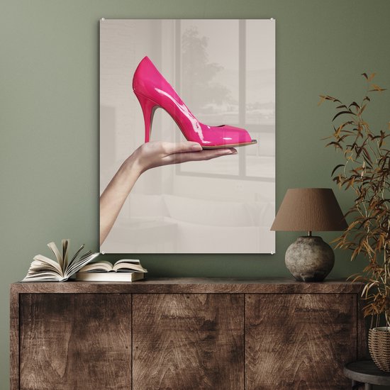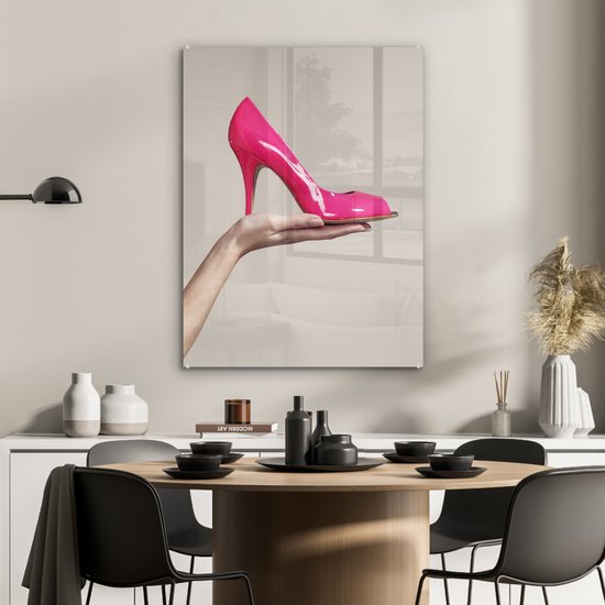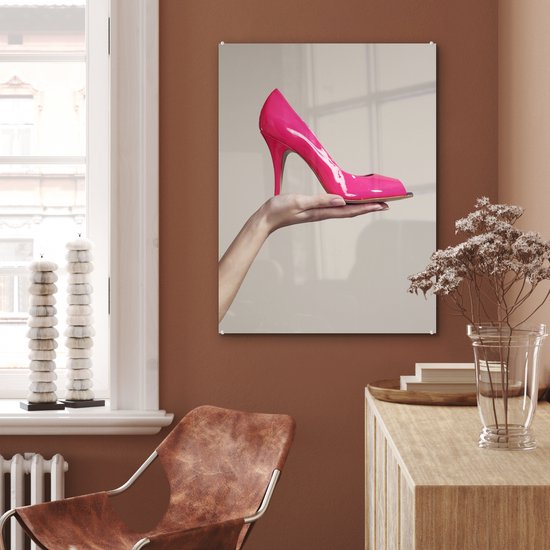 MuchoWow® Peinture sur verre 60x80 cm - Peinture sur verre acrylique - Chaussure rose à talon haut - Photo sur verre - Peintures